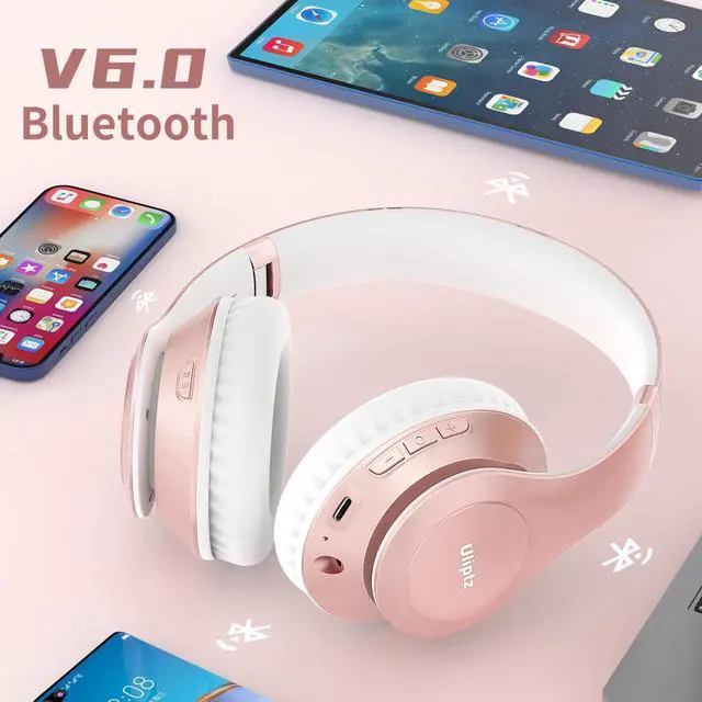 HIGH FIDELITY AUDIO - Uliptz Bluetooth headphones deliver crystal crisp highs, balanced mids and powerful bass through 40mm acoustic stereo drivers. Equipped with 6 EQ modes, switch according to different music the balanced sound. You can enjoy high-quality crystal clear stereo sound with our over-ear headphones. ^^ STRONG BLUETOOTH 6.0 TECH - The wireless Bluetooth headphones are compatible with all Bluetooth-enabled devices. Advanced Bluetooth 6.0 technology provides a more stable, faster Bluetooth connection and can be paired with two devices at once and seamlessly switch between them - meaning you can quickly switch from listening to a playlist on your phone to taking a conference call on your laptop.
