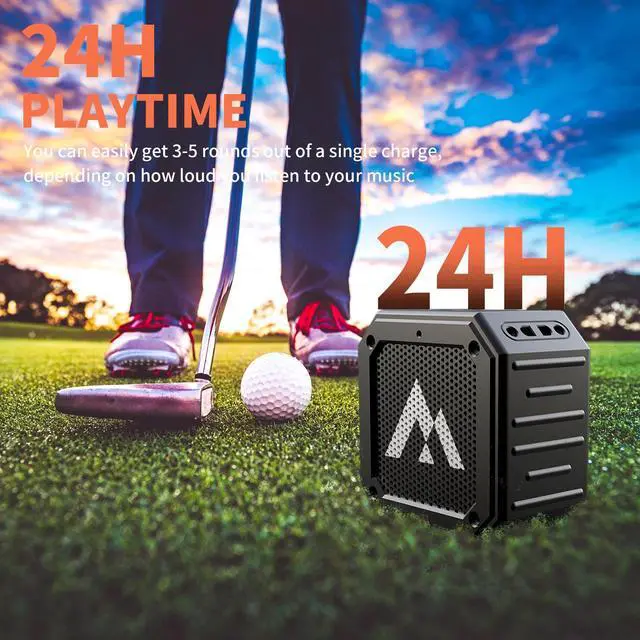 Any Adventure]: Built to withstand any adventure, our waterproof golf cart bluetooth speaker is designed with military-grade quality, perfect golf accessories for men. With its tough rubberized coating, IPX7 waterproofing, and shockproof design, it's perfect for both indoor and outdoor use. Relax and enjoy your ultimate entertainment without worry during your outdoor adventures. ^^ [A