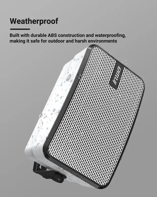 ^^: This wall mount bluetooth speaker can stand up to splashes, spills, and light rain. Great for using outdoor all weather. The ABS mesh grille enclosure protecting it from the harsh weather and preserving sound integrity.