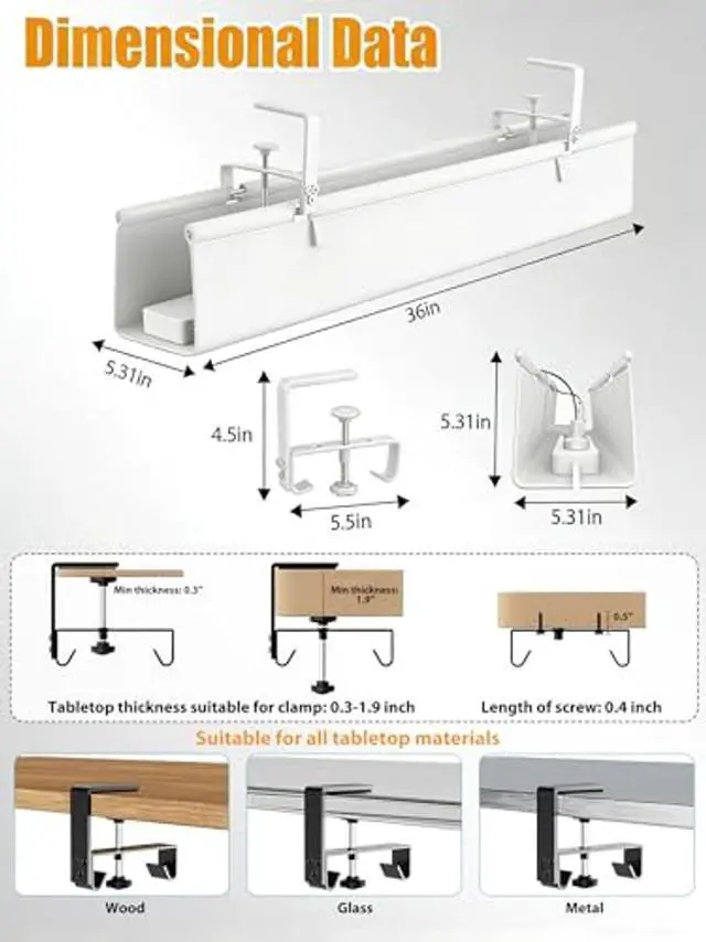 Versatile & Scratch-Resistant Design: Designed to fit desks from 0.3" to 1.9" thick, this under desk cable management tray works on metal, wood, or glass surfaces. It includes protective padding to prevent scratches, making cable management both flexible and safe ^^