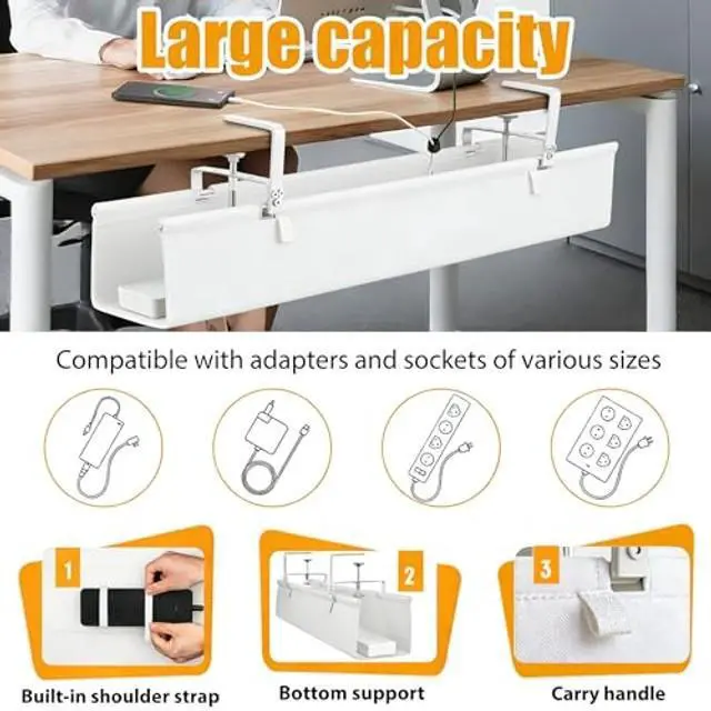 Capacity Storage: This under desk cable management tray offers a spacious and discreet solution to completely conceal all cords. With a generous 48-inch size, it easily stores power strips, adapters, and excess cableskeeping your workspace tidy and organized ^^