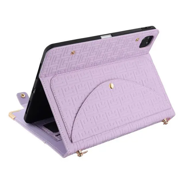Handbag Case for iPad Air 13" M3 2025/M2 2024, iPad Pro 12.9-inch (6th/5th/4th Generation) Cover w/Pencil Holder, Techcircle Folio Stand Functional Wallet Case w/Shoulder Strap, Lavender