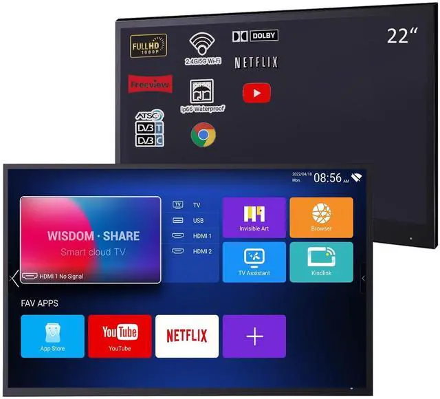 BATHROOM TV/HOTEL TV- Elevate your bathroom or hotel experience with our cutting-edge TV designed for modern living. Immerse yourself in luxury with its sleek black color, perfectly blending into bathroom, hotel, and kitchen spaces. The IP66 waterproof rating ensures durability, and the TV comes with 2 powerful vibration speakers for a superior audio experience. The included IP68 waterproof remote control adds convenience to your viewing pleasure. ^^ SMART FULL HD LED TV- Experience the future of entertainment with our Smart Full HD LED TV featuring the Android 11.0 system. Enjoy hassle-free channel access without the need for a TV box, and say goodbye to the constraints of aerials.