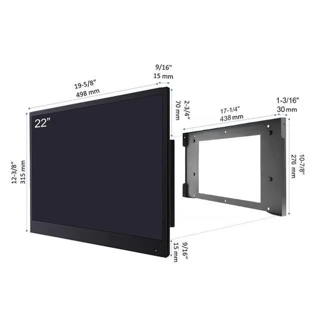 Operates on 12V DC output for safe use in wet environments, with a 110-240V input mains adapter included. ^^ DIMENSION & INSTALLATION- Designed for ease, the unit size (WxHxD) is 498x315x40mm ( 19.5"W x 12.4"H x 1.57"D ). The in-wall recess dimensions are 438x276x30mm ( 17.2"W x 10.8"H x 1.2"D ). The package includes an embedded bracket for in-wall installation and a wall bracket for on-wall mounting, along with comprehensive installation instructions.