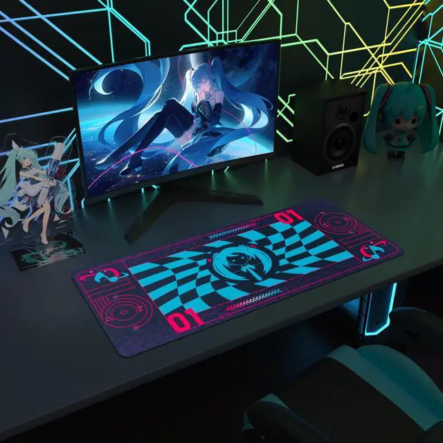 Iconic Hatsune Miku Design: ZGTMSZ Mouse Pad features high-quality, original artwork with the classic Miku color scheme. Miku cyan, neon magenta, and warped checkerboard patterns visualize rhythm and sound waves ^^