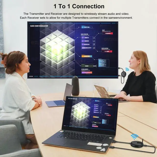 Wide Application of 1080P60Hz: The Wireless HDMI splitter is suitable for outdoor business presentations and supports a resolution of 1080P@60Hz. It is compatible with most HDMI output devices, including laptops, PCs, Blu-ray players, cameras, DVDs, DSL
