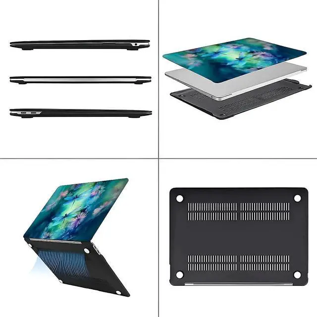 Punmada for MacBook Pro 16 Inch Release 2019 Model A2141 Black Computer Case,Novelty Premium Pattern Hardshell Laptop Case Blue Green Dragonfly Fantasy