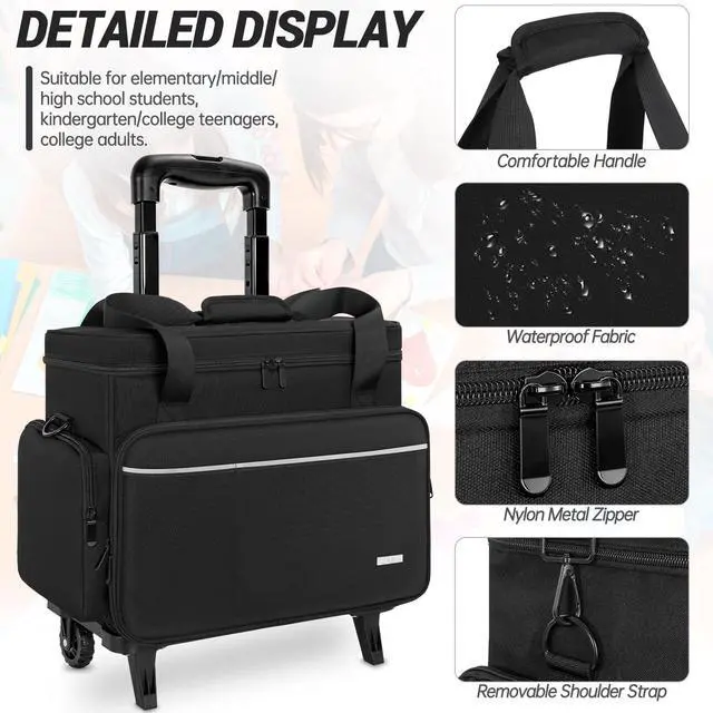 Removable Trolley Design: The rolling scrapbook tote features a detachable trolley system, allowing you to switch effortlessly between a wheeled scrapbook bag and a tote storage bag. Need a more compact option? Simply detach the trolley, and the bag transforms into a tote or a storage shoulder bag with a comfortable, adjustable strap for hands-free carrying ^^ Multiple Pocket CompartmentsRoomy and large compartments provide separated space for your