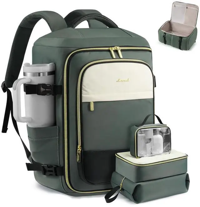 Stay Organized & Travel Stress-Free: Meet the carry on backpack for airplanes that simplifies travel. As a travel backpack personal item size, it opens like a suitcase for easy packing and comes with a full organizer set (clear toiletry bag, shoe bag, and packing cube). The included clear toiletry bag is TSA-compliant and waterproof, ensuring you sail through security. ^^