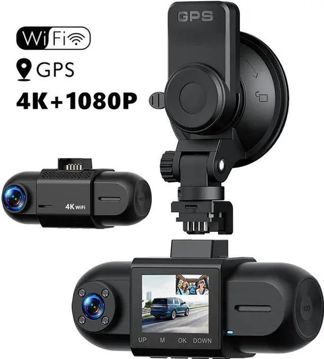 Real 4K 5G WiFi Dual Dash Cam with WiFi GPS, 2160P Car Camera with Free App, UHD 4K+1080P Driving recorder, 1.5 Inch Car Dash Camera, 24/7 Parking Mode, Motion Detection, ADAS Track Departure Warning, Forward Car Warning, Night Vision, Gravity sensor, Loop Recording, G-sensor, Support 32GB Max