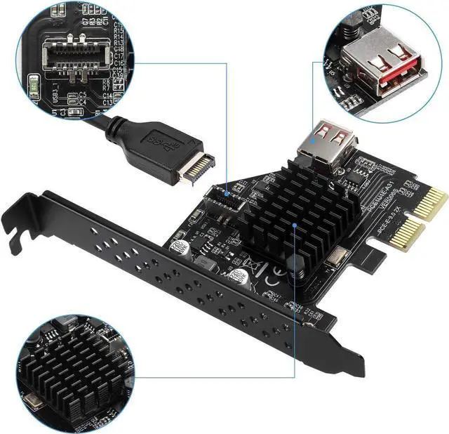 This product can convert the PCIE high-speed data transfer interface of the computer into a TYPE-C 3.1 front-end high-speed data transfer interface (TYP-E 10Gbps) and an integrated USB 2.0 port.