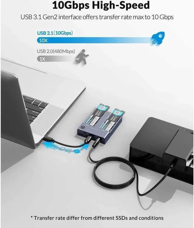High Speed Transmission: the m. 2 NVMe speed up to 10Gbps, the SATA speed up to 6Gbps, support UASP (Windows 8 or above)