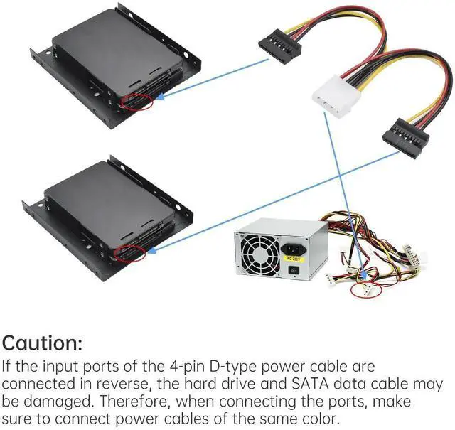 - [Package Contents] 2 mounting kits, 1 screwdriver, 40 screws, 2 SATA data cables and 2 SATA power cables. Product Size: 12*10*2.5 cm (L*W*H).