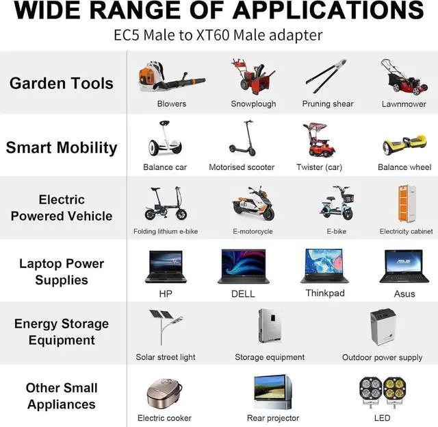 Features: Mould type XT60 to EC5 Connector, has