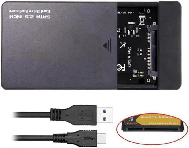 Aomoproing CFast to USB-C USB3.0 & SATA Card Adapter 2.5" Case SSD HDD CFast Card Reader for PC Laptop