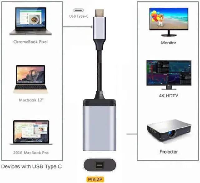 • USB-C Adapter lets you connect your Mac with USB-C port to any Mini DP display or projector.