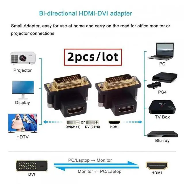 2pcs/lot Up & Down Angled 90 Degree DVI Male to HDMI Female 4K Adapter for Computer HDTV Graphics Card