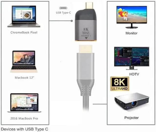 USB-C x HDMI adapter supports 8K@60Hz, 4K@120Hz for USB4 USB-C Type-C Enabled Desktops and Laptops to Connect to HDMI Displays, enjoy home theater with 8K/4K high resolution.