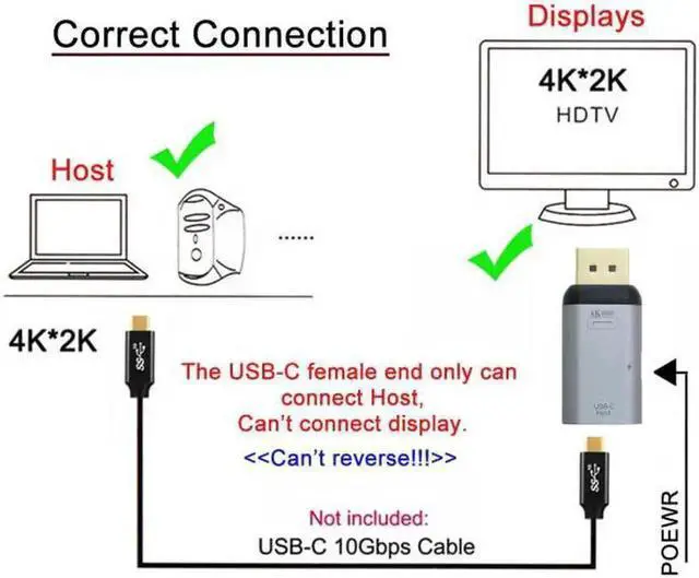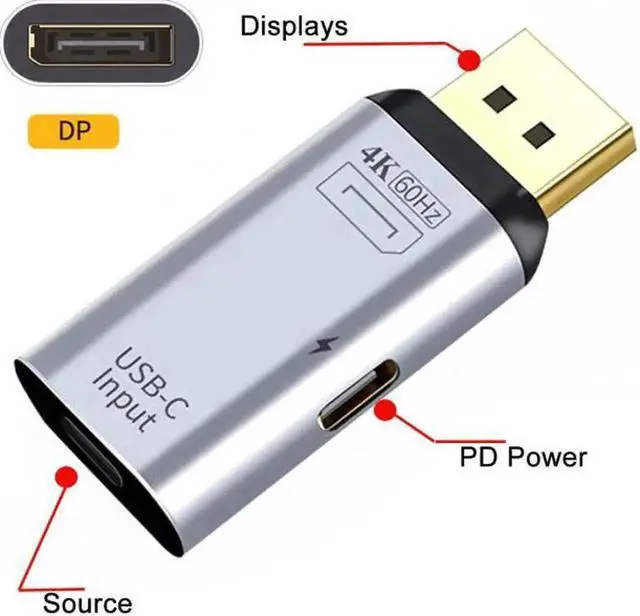Aomoproing USB-C Type C Female Source to Displayport DP Sink HDTV & PD Power Adapter 4K 60hz 1080p for Phone & Laptop