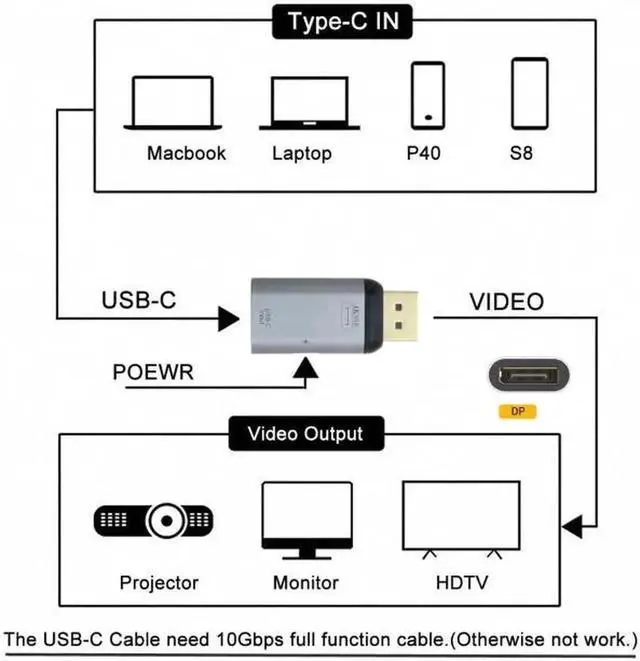 • USB-C Adapter lets you connect your laptop with USB-C port to any Displayport display or projector.