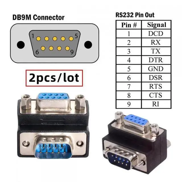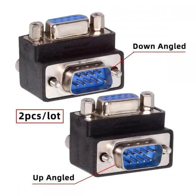 2pcs/lot Up & Down Angled 90 Degree RS232 D-Sub 9Pin Screw Type Male to Female Nut Type Extension Adapter
