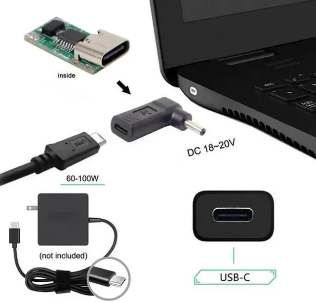 Aomoproing USB 3.1 Type C USB-C to DC 19V 4.0*1.3mm Adapter PD Emulator Trigger 90 Degree Angled