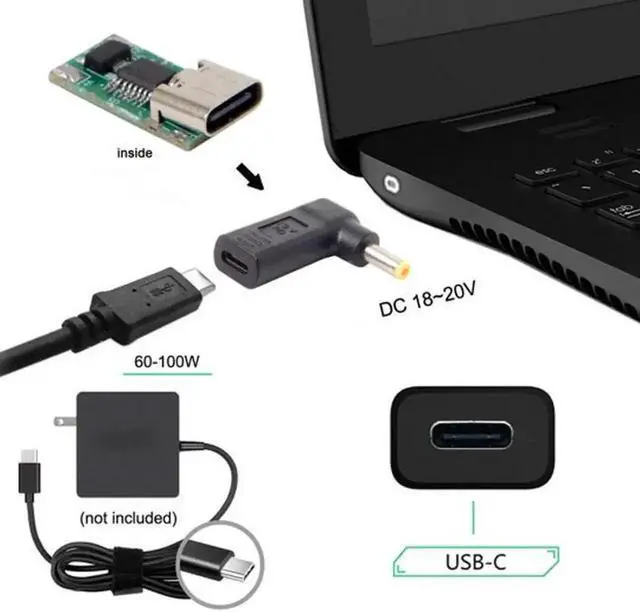 Aomoproing USB 3.1 Type C USB-C to DC 19V 5.0*1.0mm Adapter PD Emulator Trigger 90 Degree Angled Yellow