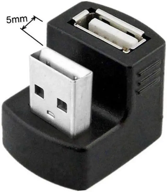 Aomoproing Down Angled USB 2.0 Adapter A Male to Female Extension 90 180 360 Degree Black