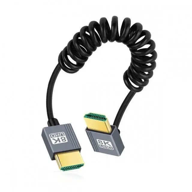 • HDMI 2.1 Male to HDMI Male 8K 60hz Stretch Coiled Cable Angled 90 Degree for HDTV Computer Laptop Monitor