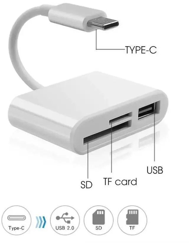 Super Utility PortsSD/TF (Micro SD ) dual card slots, easy inserting and pulling, compatible with SD, SDHC, SDXC, MicroSD, MicroSDHC, MicroSDXC, for all kinds of Dash Cam/Trial Camera/Digital Camera memory cards, capacity up to 128 GB. The standard USB port can works as USB Adapter connect camera, USB flash drive, U disk, hard drive, keyboard, mouse, printer etc to the USB-C devices.