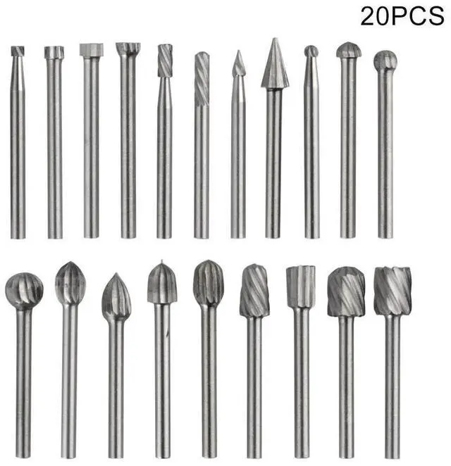 20pcs high speed steel carbide rotary burr in Assorted shape, fits Dremel Tool can meet most of your needs, for drilling holes, engraving, carving, wood working.
