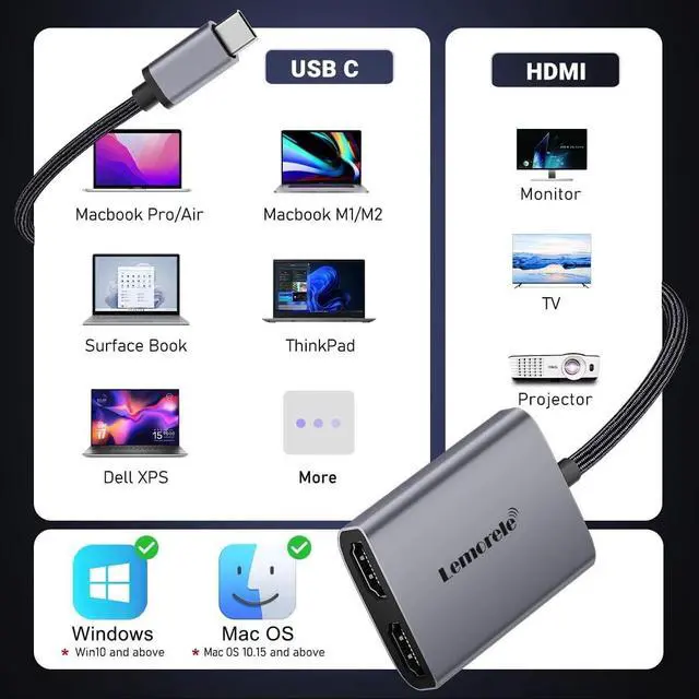 [Extended/Mirror Mode]: Under Windows system and MacOS system, it supports extended mode (ABB and ABC) and mirror mode (AAA). The monitor can display the same image or different images. This adapter providing a variety of protection systems to prevent over-current, over-voltage, short-circuit, heating dissipation, can improve the performance of the operation.