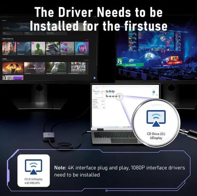 [Up to 4K@30HZ resolution]: The highest resolution can reach 4K@30HZ, plug and play with clear picture quality to meet daily needs. One of the ports is 1080P, and you need to install the driver "Udisplay" for first use. Doesn't support playback of HDCP-protected content on sites like Netflix, Hulu and YouTube.