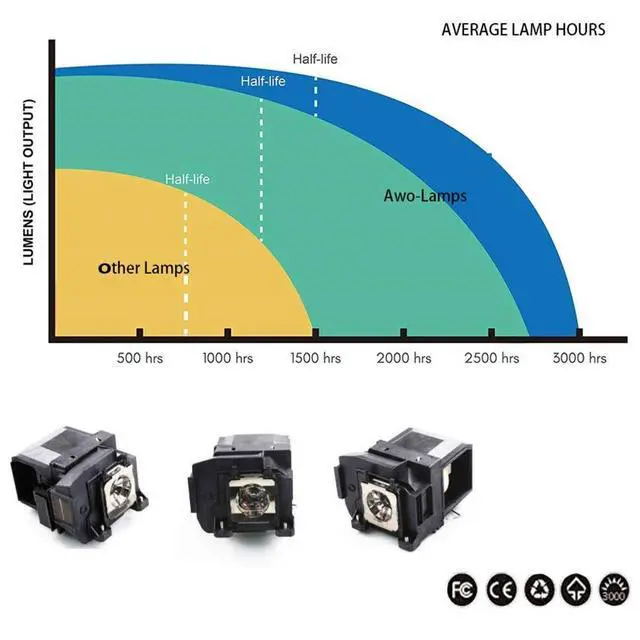 AWO V13H010L85 Replacement Projector Lamp Bulb with Housing ^^ Fit for EPSON PowerLite Home Cinema 3000/3100/3500/3600e/3700/3900, EH-TW6600, EH-TW6600W, EH-TW6700, EH-TW6800 Projectors ^^ The Premium Replacement Lamp Provides Clear And Bright And Sharp Pictures For Home Theater, School Presentation, Business Meeting etc ^^ AWO is Responsible For All The Item Descriptions And Coming With 180 Days Warranty And Lamp Lifetime About 2000-3000hours