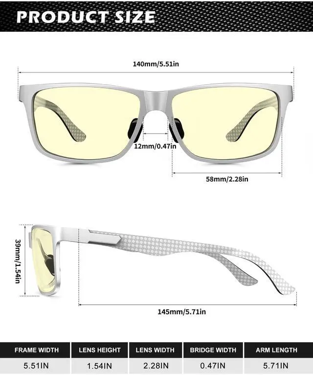 Premium Temple Material: With superior Al-Mg and carbon fiber composite temple, this type of blue light blocking glasses for men is ultra-light than pure metal frame, also more sturdy. No more worries about broken temples. As more suitable for anyone who often work or play games by the computer, do not miss this pair of practical and classic blue blocker glasses.
