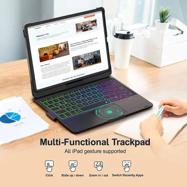 Multi-Touch Trackpad - iPad 10th generation case with keyboard features a large multi-touch trackpad for convenient navigation and flexible gesture control. Enjoy browsing, designing, or drafting with unparalleled convenience. Easily lock the trackpad while typing by pressing fn+T key to avoid accidental touches, and press again