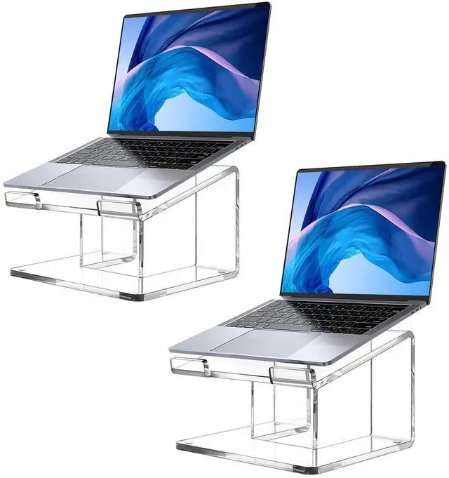 [(AESTHETIC LAPTOP STAND)] This 2 Pack clear laptop stand is made of acrylic one-piece molding technology, and it has polished edges that are smooth and delicate to the touch. This acrylic laptop stand for desk is crystal clear and is an aestheticist desk organizers and accessories. FUCDTEFC laptop stand compatible with all 10''-15.6'' laptops, such as Air 13, Pro 13 / 15 / 2018 / 2017 / 2016, Lenovo ThinkPad, HP, Dell, ASUS, Chromebook, and other laptops.