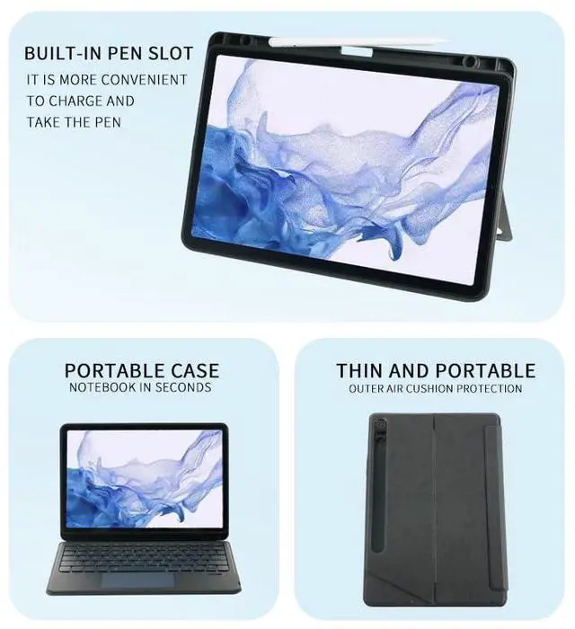BT Wirless Keyboard Case for Tablet Samsung S9/S10 11"/12.4"/14.6" Detachable Design with Backlit Keyboard, Touchpad, Black, Slim for Business Office Travel (Suitable for 12.4 inches S9/S10)