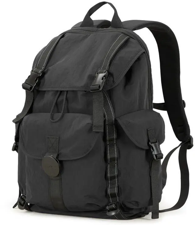 [(LARGE CAPACITY & WELL ORGANIZED)] Portable flip drawstring design allows you to pick up items quickly. The travel backpack has a spacious main compartment with a capacity of 22L, can hold clothes, books, water bottle, umbrella and other items. Independent laptop layer can fit for 16 inch laptop. Two side pockets and one magnetic front pocket can be used to organize essentials or daily necessities. Lots of pockets design make your items organized.
