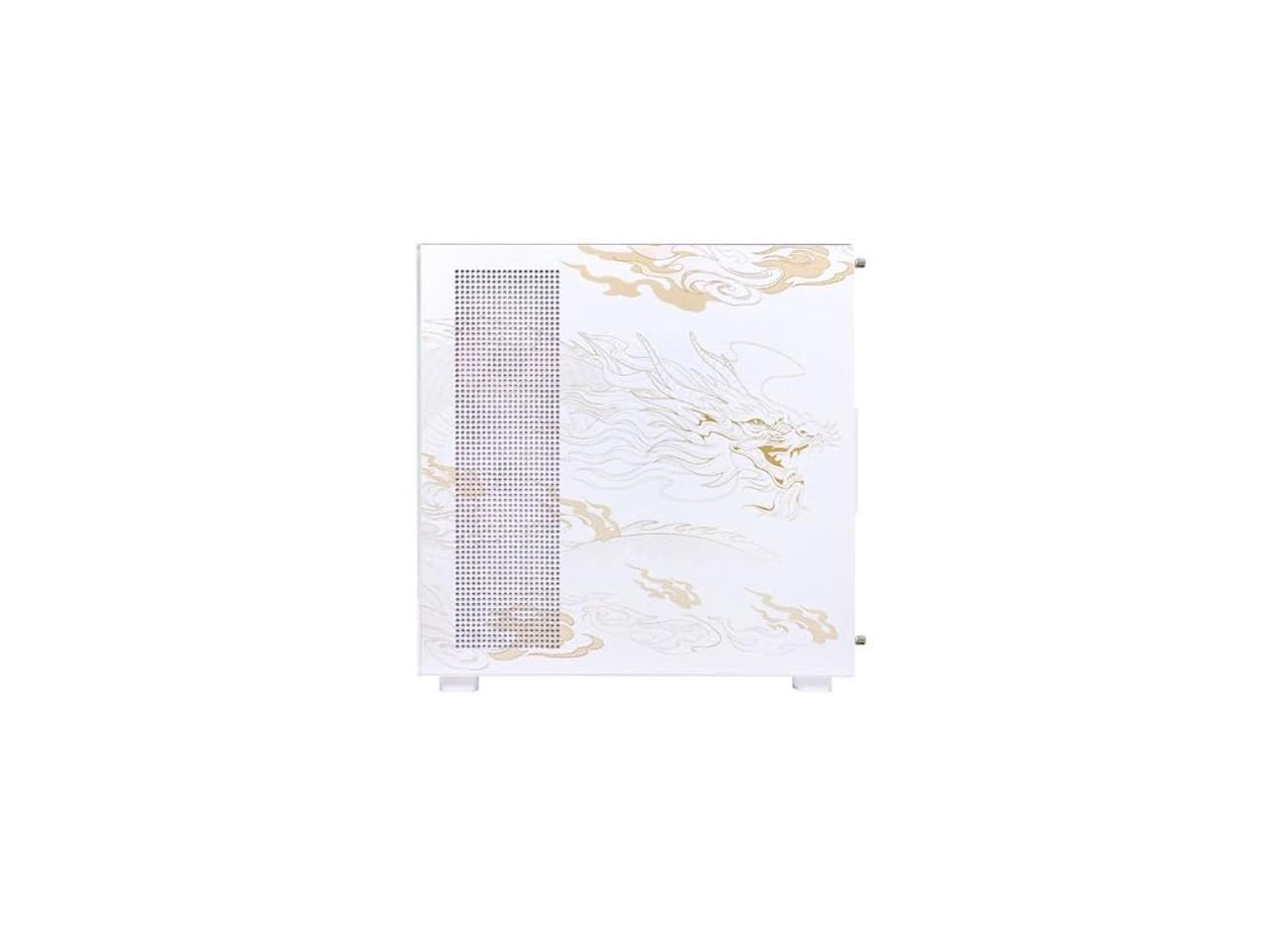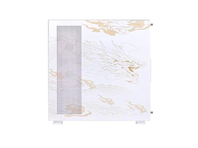 - The sleek white chassis features a stunning Asian Millennium Dragon soaring across the back panel.