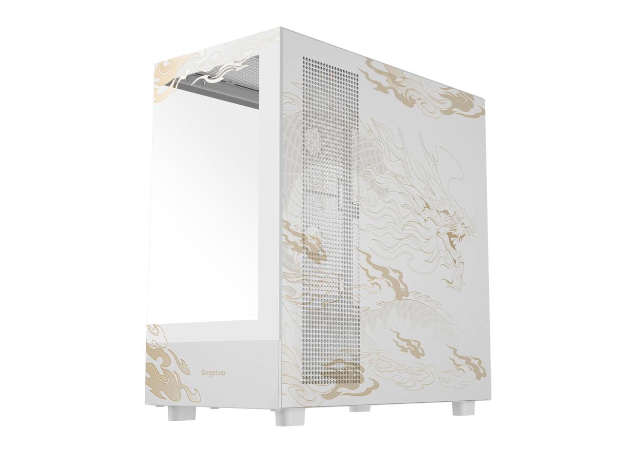 SEGOTEP Endura Pro- Special Loong Edition- Full View Dual Tempered Glass - Detachable Panels - ATX Gaming Mid Tower Computer Case - 3 PWM Fans Included-Dragon Art Design - White