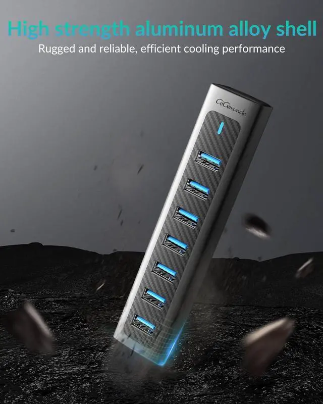 USB Hub 3.0 Fast Data Transfer - DATA ONLY, NOT for CHARGING. ^^ Multi-Device ConnectivityWith 7 port usb hub 3.0 at your disposal, connect your keyboard, mouse, printer, external hard drives, and more simultaneously, without sacrificing performance. ^^ 5Gbps Data Transfer Speeedfast data transfer speeds usb splitter with usb 3.0 technology, ensuring quick file transfers and efficient syncing. This usb multiport adapter comes with an additional USB C 5V/3A power interface, which can provide up to 3A charging power. (The charging cable is not included in the package) ^^ Fashion DesignUSB hub for pc construction was crafted from premium aluminum, which makes this hub looks sophisticated and elegant appearance.