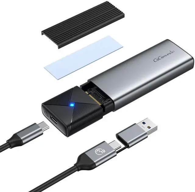 M. 2 NVMe SATA EnclosureA single bay that supports two protocols not only accommodates NVMe solid state drives with B key or B&M key, but also accommodates NGFF SATA with B&M key SSDs ^^ Speedy Data Transfer RateNVMe protocol boosts USB 3.2 Gen 2 10 Gbps support UASP protocol enhancement, offering lightning-fast speeds up to 1200 Mb/s. Meanwhile, the SATA protocol offers up to 6 Gbps speed for data transfers. One HD movie transfer only takes 2-5 seconds ^^ Toolless DesignThe tool-free installation requires just a push cover and a slid bay, with the addition of a thermal pad.