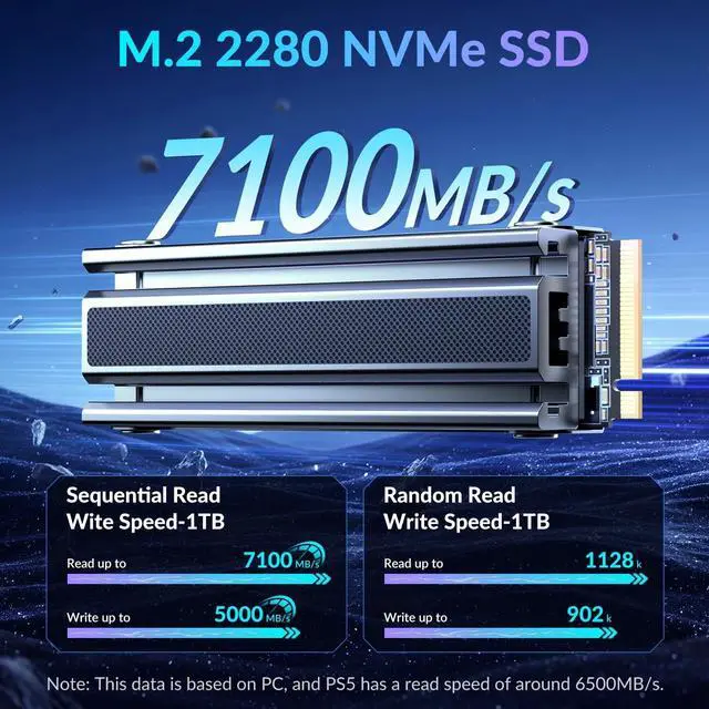 Dominate Your Game Library - Engineered for Windows gaming PCs and next-gen consoles, this PCIe 4.0 x4 NVMe SSD delivers blistering 7450MB/s read speeds - slash 45% off game loading times compared to SATA SSDs. Experice smooth open-world maps render instantly in current and future large 3D games. ^^ Built for Hardcore Gaming Rigs - X4 lanes ensure full bandwidth for RTX 40-series GPUs and Ryzen 7000/Intel 15th-gen CPUs. Low-profile heatsink prevents thermal throttling during marathon Call of
