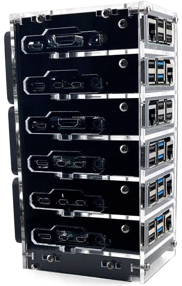 The Bramble Box holds 4 or 6 Raspberry Pi boards. Weve designed this to showcase your project by framing four or six boards in a case that maximizes utility and appearance. Each RPi is attached to an acrylic plate that can be individually removed from the stack. Comes with 2-50mm 5V fans for the 4 stack and 3 for the 6 stack to keep your RPis cool. 4 stack is 4.9 tall, 3.5 deep and 2.65 side to side 6 stack is 7.5 tall, 3.5 deep and 2.65 side to sideC4LABS IS DEDICATED TO PROVIDING THE VERY BEST CASES AND CUSTOMER SERVICE IN THE INDUSTRY