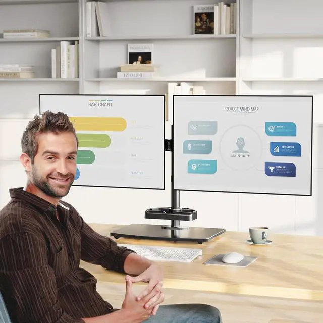 Easy Installation: The double monitor arm comes with the necessary parts and clear instructions. This freestanding monitor stand is easily installed by yourself in less than 10 minutes. Please feel free to contact us with any questions.