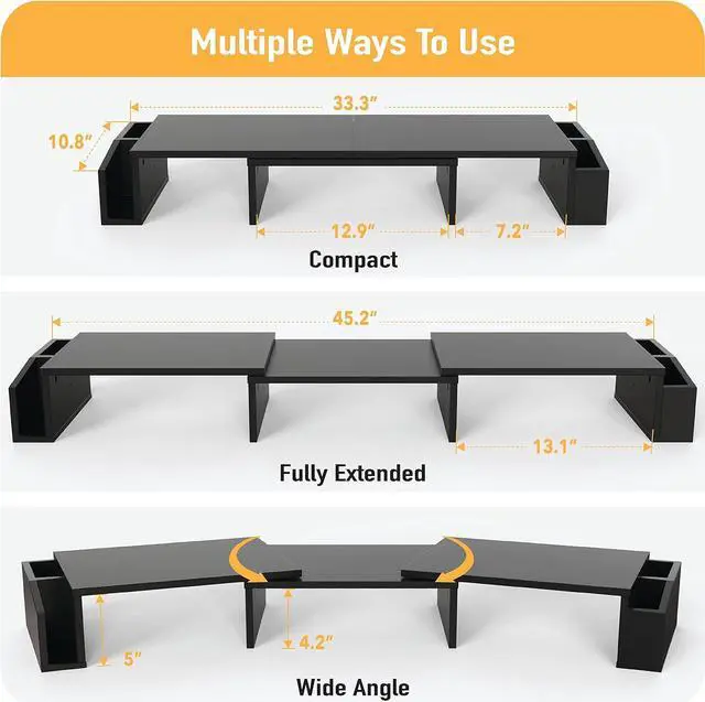 Multi-Functional Monitor Riser / Stand come with a sliding drawer, side caddies and unique ipad/phone holder. Great for printer, computer, laptop, notebook