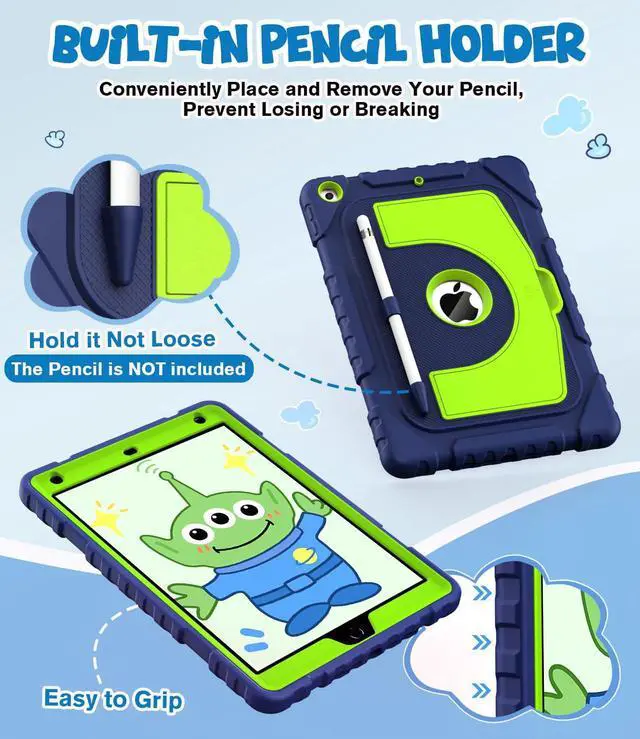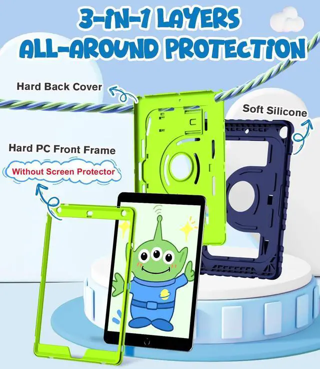 Premium Protection: The OKP 9/8/7 th gen case specifically designed with children in mind, providing comprehensive safety protection; 3-in-1 Layer design combines a premium shockproof silicone outer layer with a hard PC cover, which is protects your iPad from scratches, accidental drops, bumps and impacts (Attention: WITHOUT built-in screen protector)
