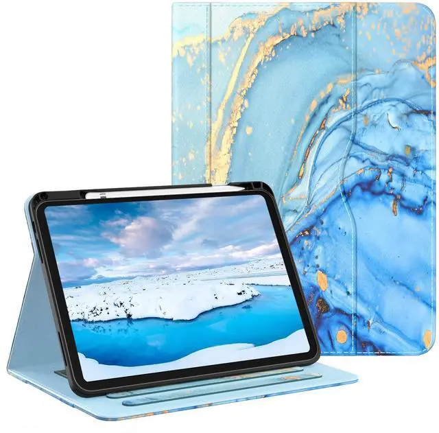 OKP Case for iPad 11-inch (A16) 2025 / 10th Generation 2022, for ipad 11th /10th 10.9 inch with Multi-Angle Viewing PU Leather Stand Cover with Pencil Holder & Pocket, Auto Sleep/Wake, Marble Blue