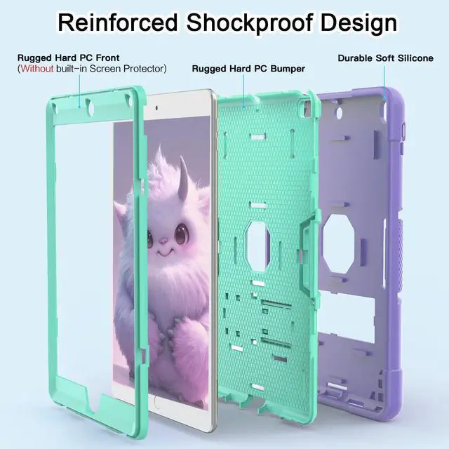 Shockproof Rugged Design This case for iPad 6th generation kids made of durable hard PC+silicone, 3-layer full body protection structure, provide a perfect protection & anti-scratch. NOTE: This ipad 9.7 inch case WITHOUT built-in screen protector.